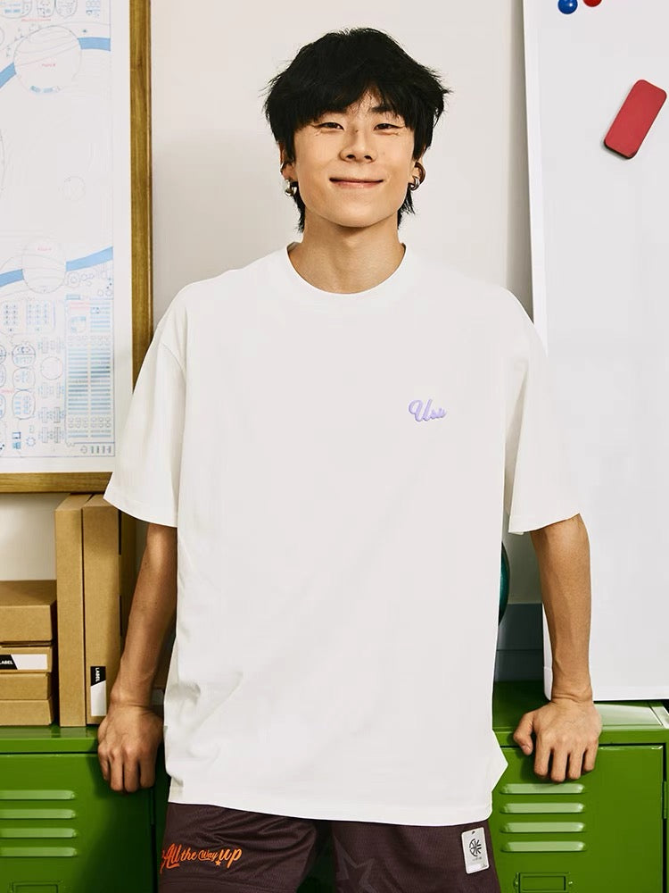A fusion of sporty edge and streetwear flair. The standout chest embroidery and distinctive tag detail elevate this tee beyond basics. Wear it layered or solo—ideal for gym, court, or daily style.